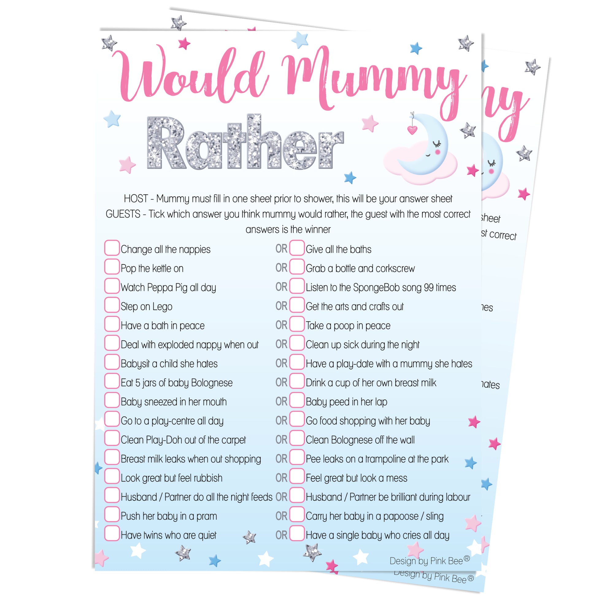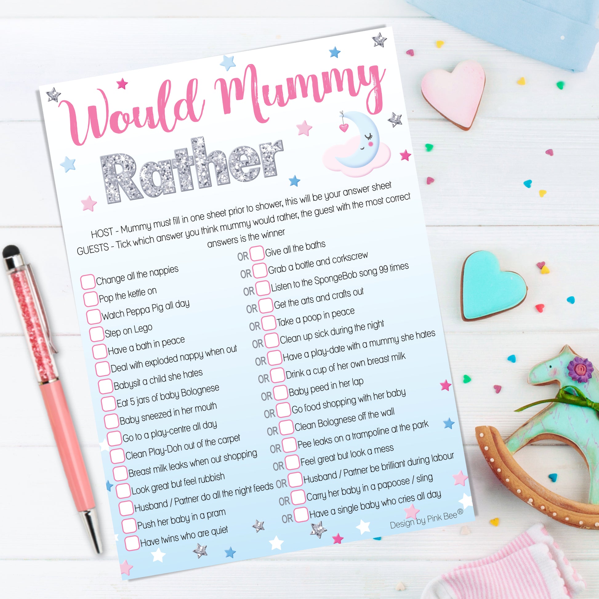 Would Mummy Rather game in our cute Unisex Moon and Stars theme.